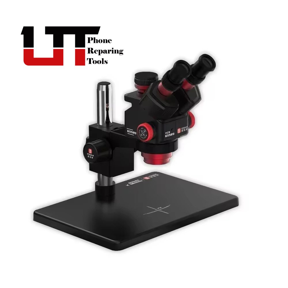 Product Description: The YCS-6558S Trinocular Microscope is a high-performance optical tool designed for detailed analysis in various applications, such as biological research, mobile phone repairs, and electronic component inspection. It offers superior magnification with a 6.5X to 58X zoom objective lens and a 10X23 high eyepoint wide-angle eyepiece. The microscope provides clear, sharp views with precise focus adjustments. It is built with durability in mind and comes with a sturdy base for stable operation.