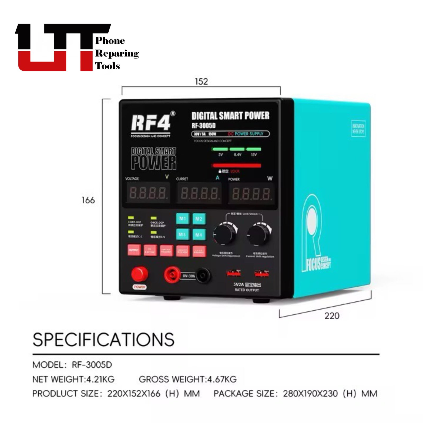 RF4 RF-3005D/RF-3005PRO digital smart power meter with intelligent temperature sensing and automatic heat dissipation